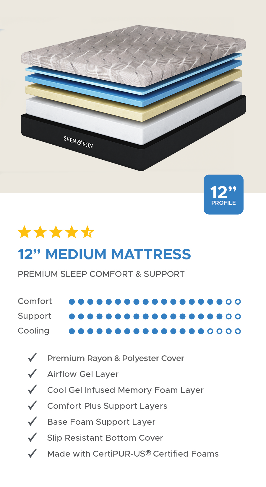 All of our mattresses are made in the USA with premium CertiPur® certified foam. The size differences determine the comfort options: